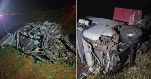 Após o impacto, ambos os veículos saíram da pista e caíram em um barranco