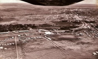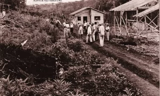 Imagem retrata a construção de casas para operários de uma serraria local