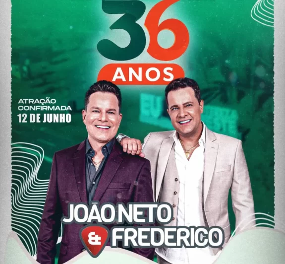 Show com a João Neto & Frederico será no dia 12 de junho