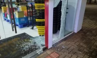 O estabelecimento teve sua vitrine de vidro quebrada durante a ação criminosa.