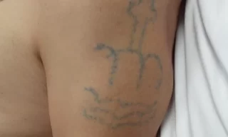 Homem tem aproximadamente 40 anos e possui uma tatuagem no braço