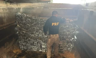 Esta é a maior apreensão da droga no país em 2025. A droga estava escondida em um fundo falso de uma carreta carregada com soja;…
