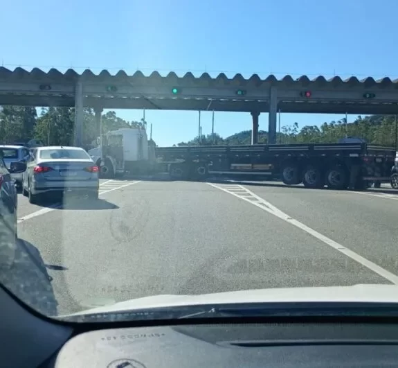 Caminhoneiro bloqueia praça de pedágio, causa tumulto e foge pela BR-101 em SC