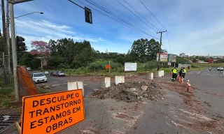 Acesso ao Bairro XIV de Novembro estará interditado nos próximos meses. Equipes da Transitar e PRF orientam motoristas